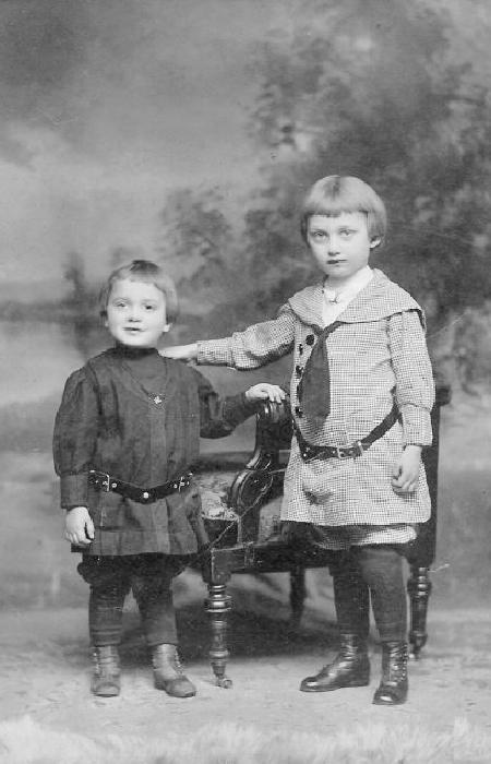 Tunic suits is a term that we have applied to these outfits. It is not always the term we have seen used at the time. We have adopted "tunic" for a range of different outfits so we have a consitrent term we can use throughout HBC. We have no idea how these garments were described in the early- and mid-19th century. We note a reference to "dress" in the 1840s--a portrait of Thomas Smith in the 1840s. This was a note from a photographic studio and not by the mother or fashion industry person. We know much more about the terms used in the late-19th and early-20th centuries. Tunic was not a term consistently used at the time to describe these outfits. There was no one term that was commonly used in catalogs and magazines. Rather a variety of different terms were used. We see a variety of different terms being used, such as sailor suit, Russian or Russian blouse suit, or Buster Brown suit. Even these terms were not used consistently. And some catalogs did not provide a specific term and used not descript terms like "suit" or "costume". Thus we have consistently used the term "tunic" for these outfits so that we can have one single term to use.