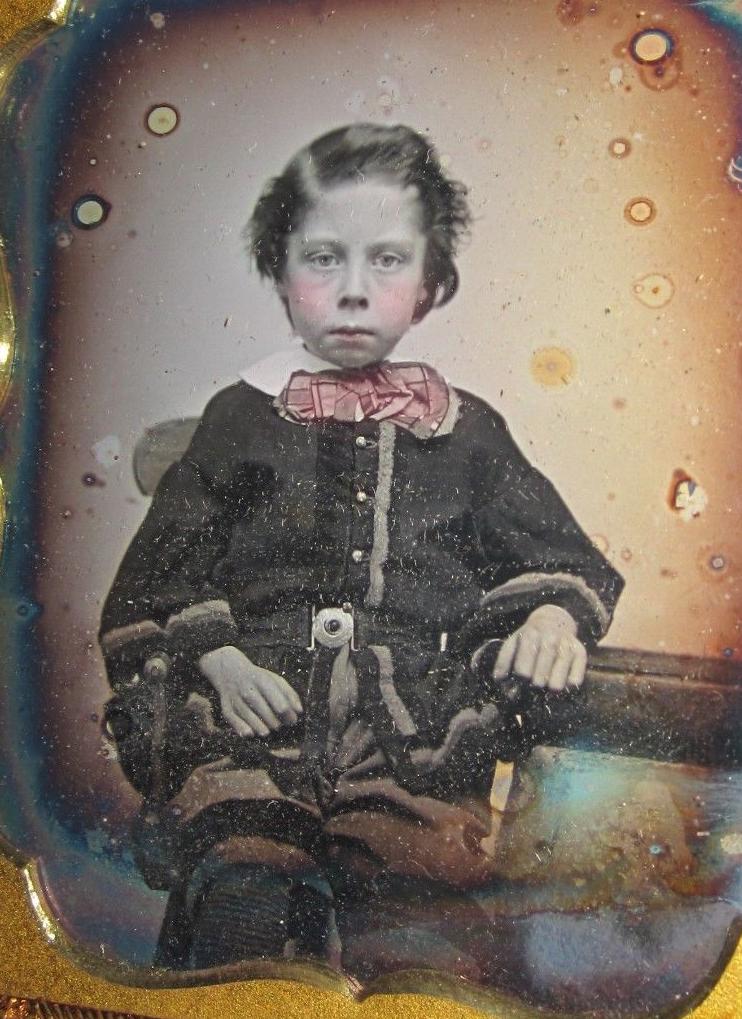 European boys in the early-19th century began wearing tunics which eventually began replacing the skeleton suit. These were loose garments wuthout front openings. We do not know much about American tunics, but see them in period illustrations. By the time photography appeared (1840s) we begin to see large numbers of actual examples. The examples we have found as we begin to build the photographic record so far do not look like the European tunics we gave found. Most of the American tiunics we have found in Dags and Ambros are front-buttoning affairs. Some look more like long, colorful flannel shirts worn with a belt. They seem very different than the tunics we see in Europe or those depicted in period illustrations. We see some American tunics that do not look like shirts, but rather sylized tunic outfits, but so far all we have found are front buttoning. Our archive is still limited, but large enough to conclude that most American tunics in the 1850s were front buttoning.