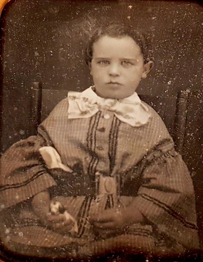 Some American tunics had wide sleeves. We believe this was even more prevalent in Europe. This seems to be the case here (figure 1). We believe that this reflected fashionable dress styling for women and appears go have influenced tunic styling. We are not entirely sure, but we believe this was fashionable styling throughout the 1850s. Unfortunately as so few Dags are dated, it is impossible to date this fashionable styling with the Dags that we have collected. We at first thought this style was popular primarily in the early-50s. We see this style in Ambros which means that it was not only fashionable in the late-50s as well. A good examole is an unidentified mother. We do not see it in the CDV record in the 60s, se we knoe it was an early-mid1850s styles. What we do not know if it was a style popular in the late-40s.
