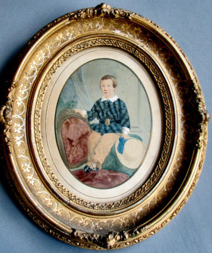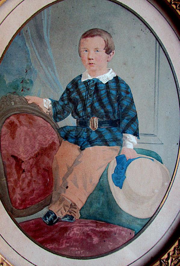 We are not sure about the colors used for tunic done in patterned fabric. Here we need to consider both the color of the tunic, but also the color of the pattern used on the tunic. The patterns were of course done in different colors. And this varied over time. Pattens seem most commn in the mid-19th century. We see boys wearing shirt-like tunics, often with belts. They commnly have plaid or plaid-like patterns. We believe that they were very colorful garments. The many grey shades sugges this, but we have been able to find very little color infomation. The only color information we have found are colorized photographic images, although we have found very few. These unfortunately mostly appear about 1860 when the CDV appared. Colorized images of course are not color photographs providing precise color informtion, but believe that the colorized portraits are generally correct. Patterns are a very differnt matter. Colorizing patterns is much more complicated and time consuming than colorizing a plain color tunic. Some are less sure about the accuracy, especially if more than two colors are involved. We see patterns again becoming popular at the turn-of-the 20th century. Here we see mostly striped tunics. While we can not assess the pattern color given the black-and-white photography of the day, but we can access darkness. Most commonly we see colored patterns with light backgrounds, but we have noted dark tunics with light patterns as well. And we can often discern both black ans white, although some dark colors like navy blue will look like black.