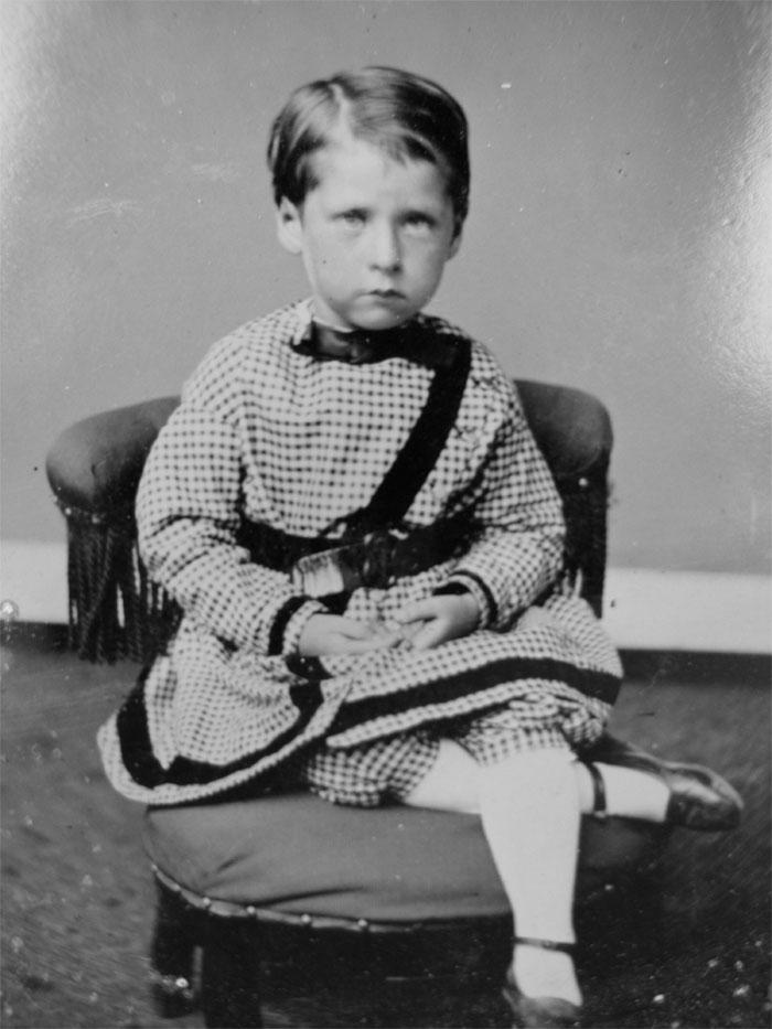 Conventions concerning tuics varied somewhat over time. We notice some European boys in the early-19th century with matching tunics and pats, but our archive us very limited. This is especilly the case for the United states. We know muh more about the trends by mid-century when the invention of photography gretly increases the available information. the tunics we see at mid-century do not seem to have commonly matched the pants. Quite a few boys wore tunics, but matching pants seem limited. This is a little difficult to assess bevause both Dags and Ambros were commonly posed in such a way that the pants worn are commonly not shown or are diffivult to make out. At mid century (1840s-50s), as best we can tell were commonly some kind of pattern. Plaids or plaid like patterns seem common, but we do we see matching pants. As far as we can tell there wee few actual tunic suits. Are ability to assess the pants changed with the appearnce of CDVs and cabinet cards. Faster exposure speed meant that the subjects did not always have to be photographed sitting down. Thus we have a much better idea of the pants worn with tunic suits by the 1860s. And the styling of tunics seems to have changed at the same time. Tuics were commonly solid colored, but we do see some patterened tunics with matching pants. We have only a few examples so we are not sure yet about the type of pants. We continue to see this through the early-20th century until tunics declined in popularity.