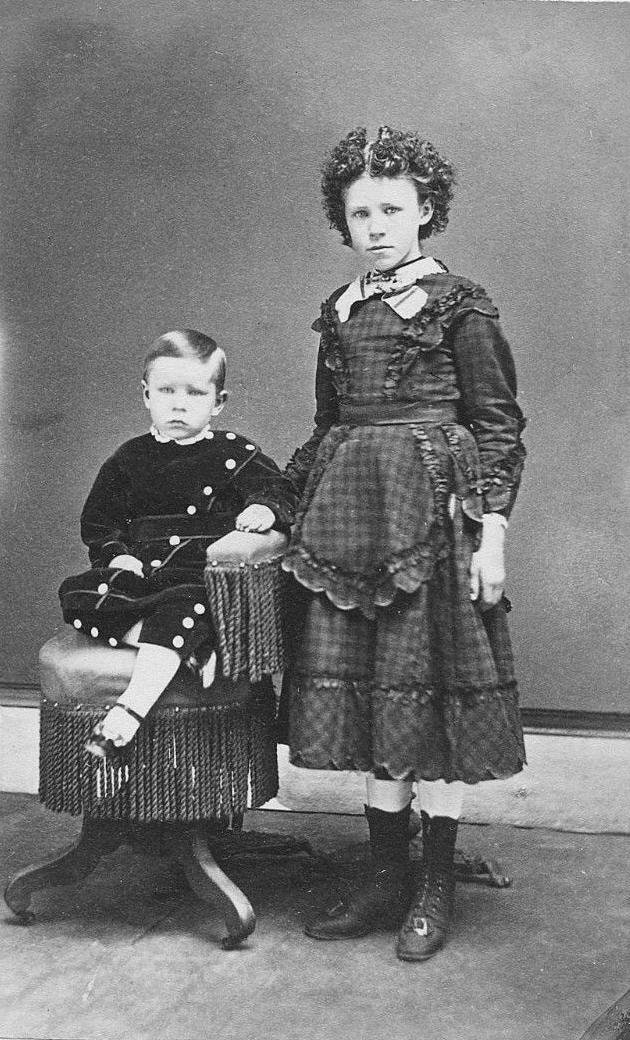 The hosiery American boys wore with tunic varied over time. We are not sure about the early- and mid-19th century as boys commonly wore long pants with tunics. As we begin to see shortened-length pants we know much more about hosiery. Basically what we see are the popular hosiery styles during each chronological period. We do not see any hosiery types or styles specifically worn with tunics. We do not yet have information on the hosiery worn with tunics (early-19th century). Only with the invention of photographic do we begin to see examples of the hosiery worn with tunics. We mostly see long-stockings (mid- and late-19th century). There was a degree of variety during this period, but there ere some observeble trends. We note white stockings (1860s). We commonly see striped stockings (1870s). We see a lot of dark stockings (1880s-90s). At the turn of the 20th century we still see long stockings, often white long stockings with formal outfits. We also see mostly white three-quarter socks. Here noth seasonlity and formality were factors. As the tunic suit became popular as a play outfit, we also see boys going brefoot with tunic suits. We mostly see this in the early-20th century. We are not entirely sure that it was not the case in the 19th century, but the family snapshot showing boys in informal family situations only became prevalent at the turn-of-the 20th century.