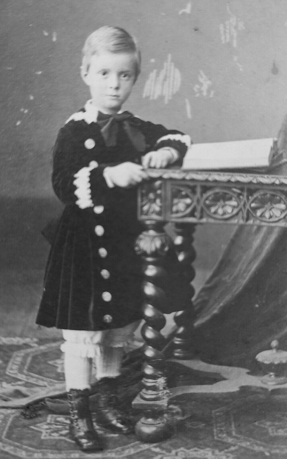 We have noted boys in the early 19th century wearing pantalettes with their tunics. Commonly this was the younger boys that had just been breeched, but some older boys also wore pantalettes as well. We have noted boys wearing pantalettes with tunics as late as the late-1850s. Until the 1860s younger boys might commonly wear a tunic with lacey pantalettes. Tunics for little boys even at mid-century provided many opprtunities for a doting mother to fuss over her son. Small boys between 3 and 6 might wear tunics with white drawers showing below the hem, deopending on the period, often well below the hem. Sometimes the pantalettes were decorated with lace and ruffles. Others were more plain, but still in lighter material than the tunic and usually white. Girls and sometimes boys wore these long lace trimmed pantalletes (drawers). A good example is a painting of an English boy in an idealized Victorian family being cared for by a governess in the early-1850s. We also notice two Hungarian boys about the same time. We also notice examples in the late-1860s and early-70s.