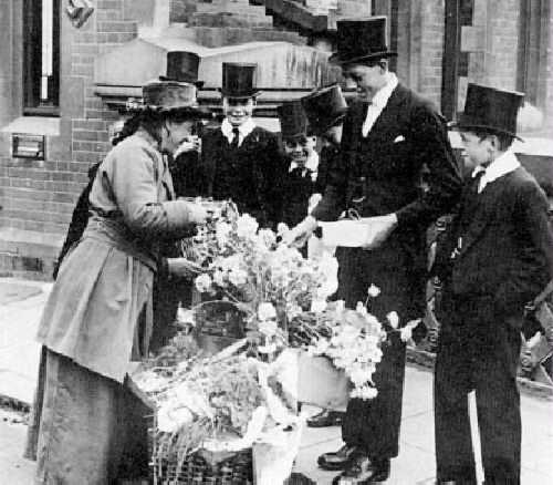 A button hole is the term for a flower worn on the lapel for a special occassion. The fourth of June at Eton, is one such occasion.