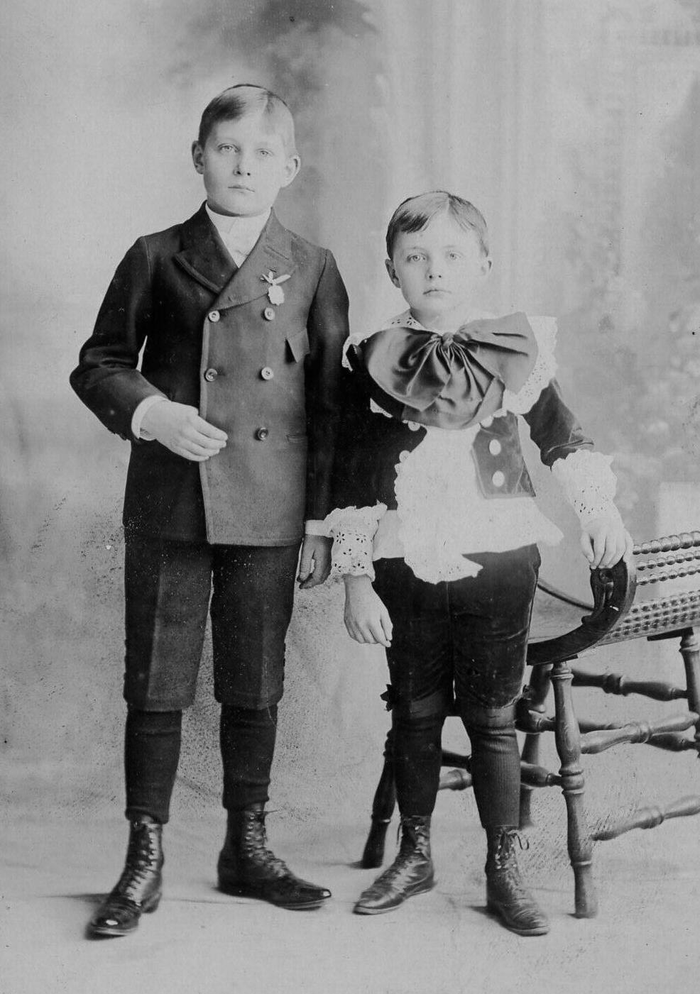 It was very common for pre-school boys to wear Fauntleroy suits. The 5 year olds were the largest pre-school groiup. Kindergarden and pre-school were not very common. In the 1880s and 90s, mothers would often buy a Fauntleroy suit for a boys first outfit after breeching and many boys would contunue wearing Fauntleroy suits until the boys began primary suits. We also see elaborate Fauntletoy blouses wwith huge collars and cuffs along with large floppy bows. We also see primary school age boys wearing Fauntleroy suits, but the classic cut-away jacket becomes less common. Rather we begin to see regular jackets worn with Fauntleroy blouses and trim. But for 5 year olds we still seen mostly the classic small jackets. Older brothers unless several years older wore a variety of suits, but still knee pants suits like the Fauntleroy suits. We believe that 4 and 5 year olds were the two most common year cohorts for Fauntleroy suits. A lot of younger boys also wore them, but many of the younger boys were not yet breehed and still wearing skirted garments. The boy here looks to be about 5, perhaps 6 years old (figure 1).