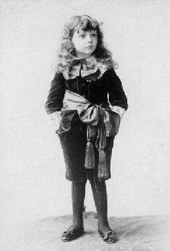 We note some boys who are wearing Fauntleroy costumes that are so perfect that they seem to be costumes rather than actual suits. In the case of Funtleroy suits, the concept of a costume and a boy's best suit may actually merge. It is difficult to tell in many instances as for so many portraits rhere is no provinance. Some of these costumes images may actually be boys involved in stage plays. "Little Lord Fauntleroy" was presented as a play throughout America and Europe. We have images of several American boys who played the part. In some cases these are identigied, in other cases they are not. Fauntleroy costumes are a little more complicated than most other costumes as long hair and often ringlet curls are a part of the complete outfit. The portrait here is so perfect in every detail that he could be a boy plying the Faunteleroy or he could be just dressed up by a fashionconcious mother.