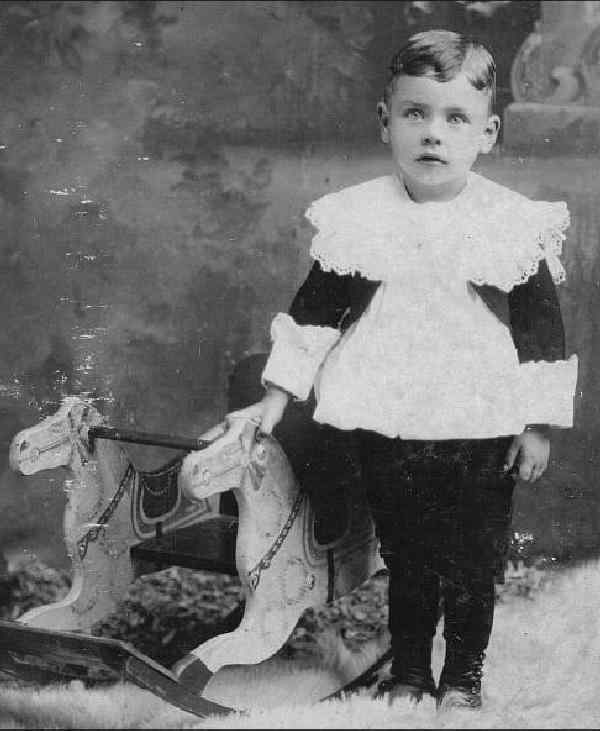European boys, but we see them more commonly in America. Fauntleroy suits were commonly worn both with and without these bows. Many American boys wwere outfitted with large bows to match the large collars that were also commonly worn with Fauntleroy suits. But the large collars were also commonly worn without these boys. Here it was up to the mother's preferences. I do not know if there were social class or other factors associated with the choice. As far as I can tell it was entirely random. We see a wude variety of different bows. There are both solid collored and patterned bows worn. Plaid seemd to have been very popular. The one thing we can't tell is the color because of the black and white photography of the day. The bows were not just worn with Fauntleroy suits. We also see older boys wearing them with sack or regular suits. Often boys when they first got sack suits wore them with floppy bows for a tear or two before beginning to wear more mature neckwear.