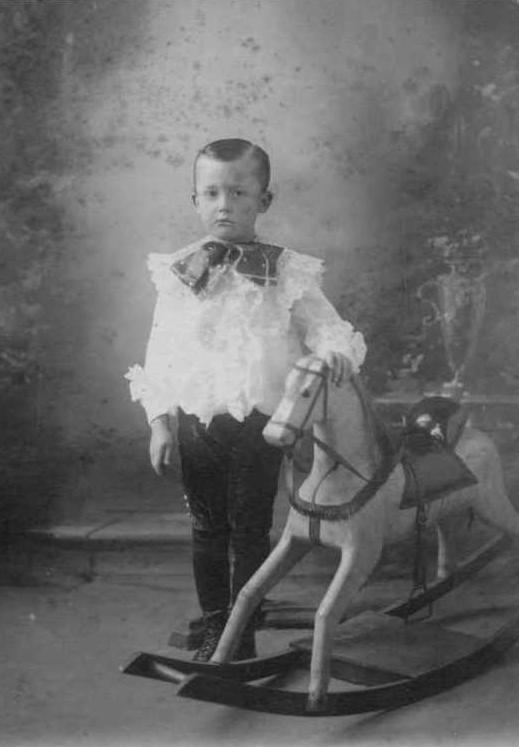 The American boys wearing floppy bows with their Fauntleroy blouses ranged from about 2 years of age to younger teens. The older boys tended to wear the less fancy blouses and often without the classic Fauntleroy jackets. We see some families where all the boys are wearung Fauntleroy blouses and floppy bows whole in other families it was justr the younger boys. his tended to vary with the mothers fashion sence as well as the age distribution of the boys. The design of the blouses also varied. The younger boys tended to wear the enormously fabcy blouses with lave and ruffles. The older boys might have large ruffled collsrs, but not nearly as fancy. This varied somewhat with mother being the porimary arbiter as to what was appropriate. The chronology was a major factor. It was primarily the 1890s that we see older boys wearing these blouses, although we also see them in the late-1880s and early-1900s. We hope to refine the age trends as we expand this section.