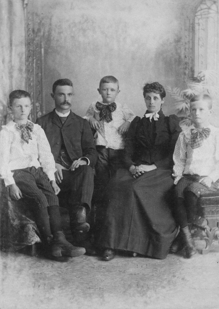 Most Fauntleroy blouses were white. This was especially the case of the fancy blouses worn by younger boys with the classic cut-away Fauntleroy jackets. A great proportion of the Fauntleroy blouses in the photographic record appear to have been white. White was, however, not the only color, but it was the primary color. Fauntleroys blouses were often done in colors and patterns. There were also some colored blouses. Unfortunately the black-and-white photography of the day offers few clues as to what the other colors were. We do notice some dark colors. They were not common, but we do see some. In addition to different colors, we also see patterns. There were a variety of patterns, including stripes, polkadots, and patterns. This often was a white shirt with a colored pattern. A good example is an unidentified Michigan boy about 1900. These patterned blouses were commonly worn by school age boys even boys 12-13 years old. They were most common in the late-1890s and early-1900s. They were not commonly worn with the cut away jackets worn by the younger boys. hese were very popular for dressing up in the summer when earing jackets were unfomfortable. They were not as fancy as the classic white Fauntleroy blouses, but had large collars often edged with ruffles.
