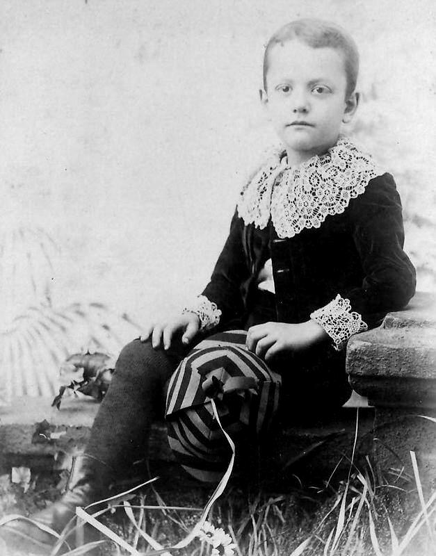 Some were done in circles like we have seen at British schools, but we think jockey colors were the primary inspiration. You wonder if the parents were vnot horse raising enthusioasts and if the boys were taken to the races. The actual colors are hard to identify given the black and white photography, bur we think that at least some were done in bright colors. Jockey caps were not a major type of headwear worn with Fauntleroy suits, but we see a number of examples. We think this was mostly in the early phase of the fAuntleroy craze (1885-95), but this needs to be confirmed. Several of the examples we have are from the Midwest and other areas away from the fashionable northeastern urbabn centers.