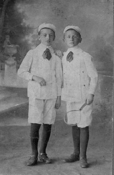 We see boys wearing Norfolk suits for a wide range of occassions. This was affected by boh chronological and social class trends. Here a factor was that when Norfolk suits were most popular, it was quite common for boys to wear suits, even for casual or sporty occassions. Also social class was a factor. Boys from modest income families would have only one nice suit that he would wear for all occassions. This was especially true in the early 20th century when the Norfolk suit was more popular. These boys would thus wear Norfolk suits for formal occassions such as First Communion or Confirmations. Boys from more affluent families would have a larger wardrobe, including suits for sporty and casual occassions. Boys might play tennis or other social sports in Norfolk suits. They were also commonly worn to school. These boys would be less likely to wear Norfolk suits for formal occassions.