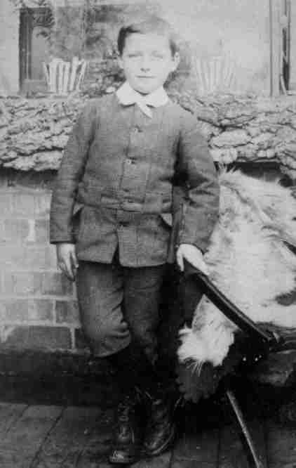 ![]() Figure 1.--This American boy wears a small Eton-like collar with a Norfolk jacket without the vertical elements that are characteristic of most Norfolk jackets. Notice the very small bow. |