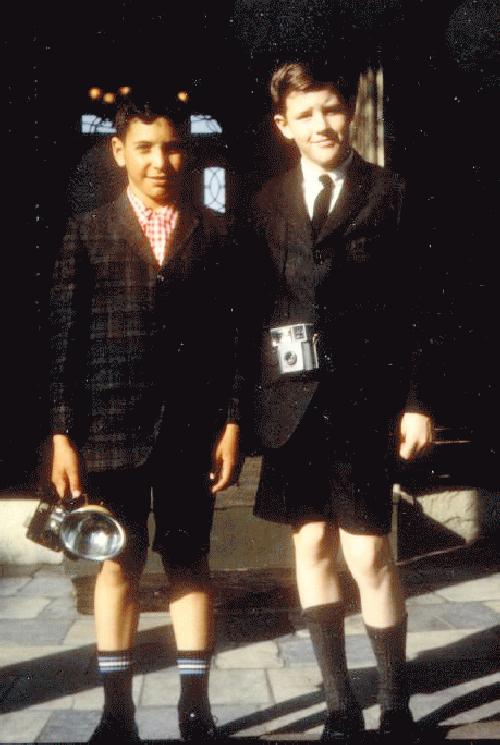 ![]() Figure 1.--Times change. These boys' mothers insisted that they dress up to sight-see in Washington D.C. during the 1960s. The image can be dated by both the narrow lapels and ties and the cameras which still used fash bulbs. (Remember those?) Notice the different levels of formality. One boy wears a casual shirt and sport socks. The other boy a tie and kneesocks. The boys were 11 and 12 years old. |