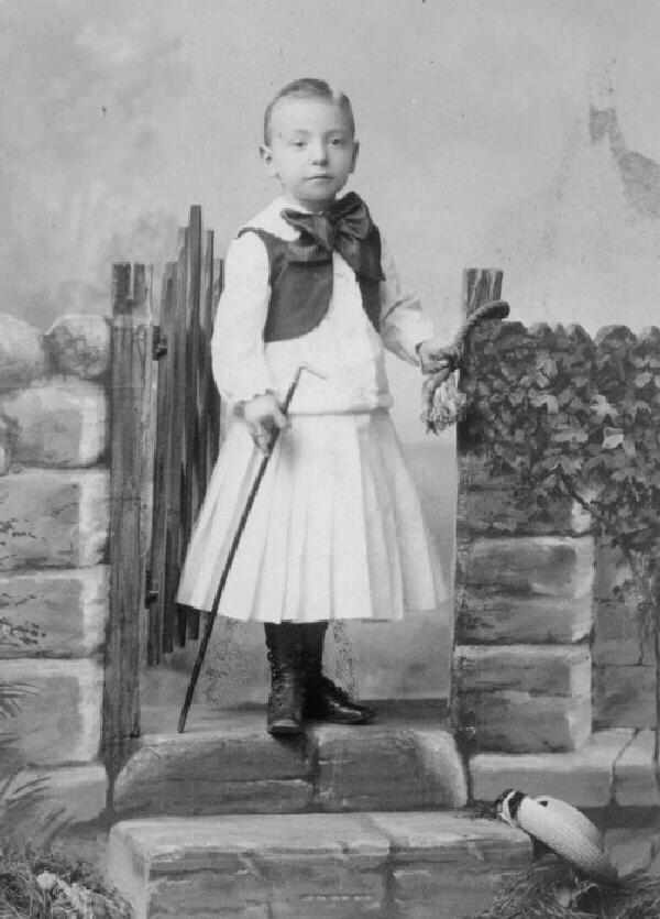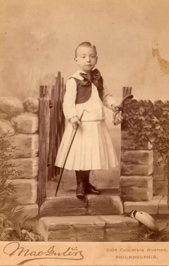 As far as we can tell, the vest was primarily worn as part of a suit in the early-19th century. Without photography, however, it is difficult to know for sure. we do note boys wearing just vests in the earliest photographs--Daguerreotypes, at least in America (1840s-50s). We do not know if they were worn like this earlier. We suspect that they were worn like this earlier, but before photography this is hard to establish. Most of the examples we have found are Dags and Ambros !1840s-50s), we have found few CDVs which boys wearing just vests (1860s). Almost all the vests we note in the subsequent 19th cenury photographic record was worn as par of suits. We see boys wearing blouses and shirts and we see boys wearing suit jackets with and without vests. We rarely, however, see boys wearing vests without their suit jackets. We have noted a few portraits of boys just wearing their vests in the 19th century, but they are relatively rare. This may, however, reflect the rarity of informal snapshot like photographs before the appearance of the Brownie in 1900, but the formality of the age also has to be considered. We have noted very few in America. Our knowledge of other countries is more limited, but as far as we can tell was also relativly rare. This may have changed some what by the late 1890s. We do, however, see a few formal portraits of boys dressed up in vests without their suit jackets such as the boy here . Such images, however, are quite rare.