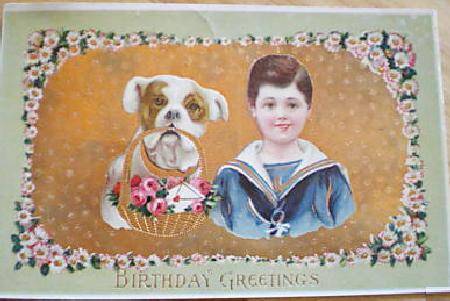 Boys sailor suits have always primarily followed the standard naval styles of blue and white. The great majority of sailor suits were either blue or white. There were many different shades Mothers being mothers, however, many did not share the dedication to naval tradition. Suits appeared in many different colors, some quite a deaprture from naval tradition. We note suits done in brown, frey, pink, and red, and there were probably other colors as well. Unfortunately the black and hite photography of the day often makes it difficult to determine what the colors were. There are some sources of information, however, that provide us some clues as to the variety of colors. Clothing catalogs are the best source of information, but vintage clothing is another important source. Post cards and other color lithographs also provide some information, bu these images are less reliable. We have begun to collect some information about the colors used for sailor suits. The basic colors were of couese blue and white with black sometimes used instead of blue. Red was sometimes used in the detailing. In addition to these classic or traditional colors we also note some non traditional colors being used.