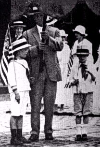 he was killed at Trafalgar. Black neckerchiefs were, however, used long before Nelson's death. The bows worn on boys' middy blouses were usually, but not always much smaller than the collar bows worn with other suits such as Little Lord Fauntleroy suits. White bows were also worn, but not as commonly. They were mostly solid colors, but some America suits had insignias on them (figure 2).