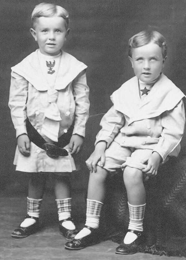 We note a range of nautical themes used as decorative devices on sailor blouse dickies. They were of course very approprisate for sailor suits. They were a stylistic touch for boys. They were not on actual naval uniforms. Even so they were especially popular for boys' sailor suits. The most popular nautical devices were anchors and ship wheels. We have been collecting images so as to show the various designs. A good example is a Chicago boy, Ralph Patterson Olmstead in 1912. His dickey had a classic anchor design. We also notice Theodore Roosevelt Johnson, a Denver boy in 1912. He also has an anchor design on his dickey.