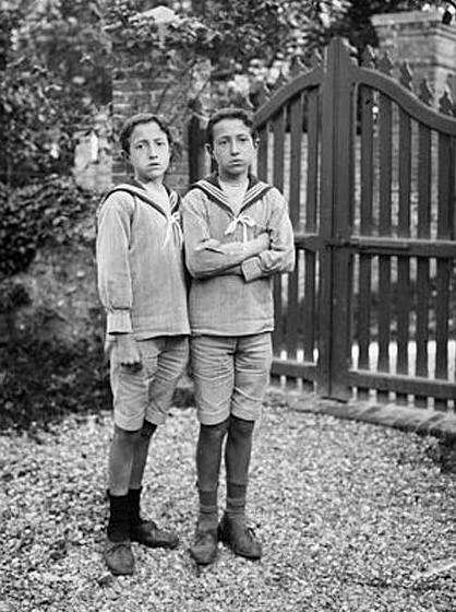 French boys like boys in other countries primarily wore blue and white sailors suits, the traditional colors used in naval uniforms. We see blue suits, white suits, and blue and white suits. Navy blue was the modt popular blue, buth others blue shades were also used. During the time in which the sailor suit was popular, almost all photographs were black and white. While we know most suits were blue and white, we also know that there were other color. This was not only because clothes normally are made in a variety of colors, but also because many colors showed dirt less than white and thus were more practical play suits. We are not sure what colors were used. We note, for example, light colored suits. We are not sure what colors they were, but they were clearly not white. We suspect brown and grey were used for play suits. We know these colors were used in America, but we can not yet confirm this in France. We do note a pink suit about 1910.