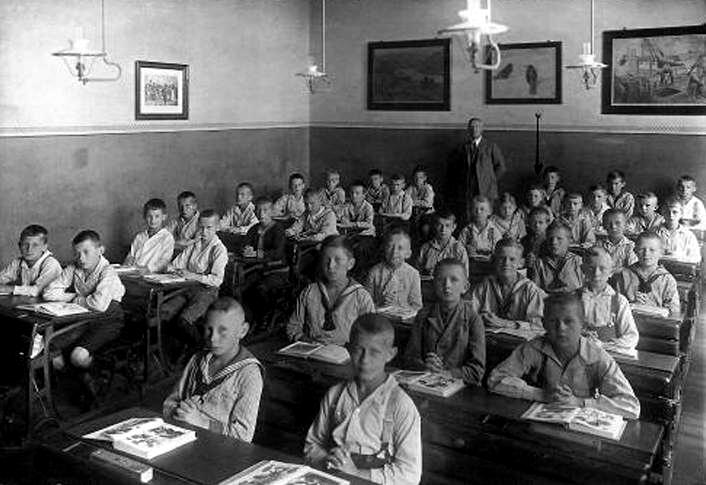 We are not sure just how sailor suit trousers were suspended. There was the button-on option. And we note some button-on pants for younger boys. School-age boys, however, for the most part did not wearbutton-on styles. It is less clear how the pants worn with the middy blouses that had waist ties were suspended. The belt was not commonly worn to suspend trouswers in the 19th or early 20th centuries. The principal method of trouswer suspension was suspenders. That can be seen very clearly in the photographic record. It is desguised somewhat if boys are wearing suit jackets. But the boys wearing only shirts or blouses very clearly show how common suspenders were. Belts began to appear in the inter-War era, especially the 1930s, but before that suspanders were commom. But suspenders were not worn over sailor blouses so we are not sure how the sailor trousers were suspended.