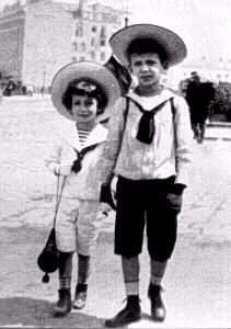 suit or Die Matrosenkleidung. The sailor suit was as popular, if not more popular, in Germany than any other country. The style appeared in Britain in the 1840s, but began to became popular in Germany sometime later--beginning about the 1870s. It was inspired by English aristocratic fashions for children and it was first adopted by German aristoctratic families. The fact that the wife of the crown prince Frederich was the eldest dauther of England's Queen Victoria who had first dressed the princes in the uniform of enlisted sailors brought the style to Germany. Thus Kaiser Wilhelm II himself wore one of the earliest German sailor suits as a boy in 1862--a suit given him by his English aunt. Following this style, Wilhelm's children also wore sailor suits. It was only the Imperial family that adopted the sailor suit, but the other German royals and aristocratic families also adopted sailor suits for their children--especially the boys. The sailor suit had become an important style in Germany during the 1890s. Political developments, however, made it even more popular. Prussia and the other German states had no navies of any significance. Once the German Kaiser and Austrian Emperor started building a navy in the 1890s, however, their popularity for boys in both Germany and Austria took off. The sailor suit became the most popular and best-loved outfit for boys among the bourgeoisie and well suited the culture of militarism and nationalism that flourished at the end of the 19th century when the German navy rose to become one of the major navies in the world--challenging the British Royal Navy for supremecy. The sailor suit turned into something of a status symbol for the middle classes and was at the same time both a comfortable and practical way of dressing boys. Virually every German boy in the late 19th and early 20th century wore a sailor suit, especially middle-class boys. They were commonly worn to school by German boys.At this tine, however most of our information on German sailor suits is limited to the 20th century. The style declined in popularity after World War I as it did in other countries. While still widly worn during the 1920s, the sailor suit's association with artistocracy and the middleclass made it unpopular with the NAZIS in the 1930s because the NAZIs were trying to break down the prevailing class structure to create a more unified Volk and Reich.
