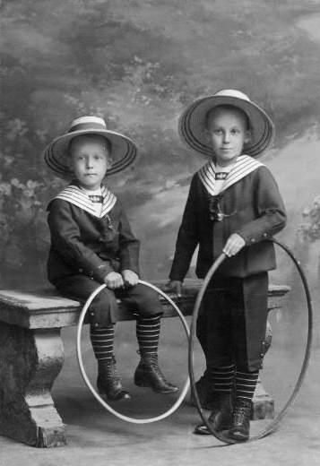 We know much more about the 20th century. By the turn of the 20th century we know much more. Here we see brothers wearing identical sailor suits in 1903 (figure 1). The suits look similar to what we might see in France or Germany. Some Swiss boys were wearing sailor suits. The hats, however, seem different. As there were no required school uniforms, the clothes children wore to school reflect popular styles. Our assessment of Swiss schools suggest that sailor schools were not very popular, far less common than in France, Germany, and Italy. We notice that in German school portraits there are usually one or more boys wearing sailor suits. This does not seem to have been the case in Switzerland. A reader writes, "I have exhaustively looked through an archive there of Zuruich canton schools with class portrairs from the late-1920s through the 50s. There are are a few boys wearing sailor suits, but not very many, It was defintely a minority style in Switzerland, at least in the Zurich canton." This is certainly the case in the German speaking areas of Switzeland than the French area as smocks were common in the French-speaking catons. Sailor suits seem more common in the early 20th century than after Wold War I. We see very few sailor suitsat schools durung the 1930s. A Swiss reader reports to HBC that in the 1940s, "I never had a sailor suit and I believe only very few mates had them. They were not so popular and presumably reserved for sundays or important occasions, like First Communion ... until the cassocks took over."