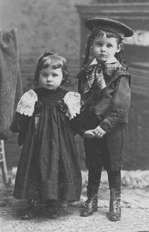 The boys in the portrait are unidentified. They are so imacualetly turned out that they look to be from an affluent family. The ringlets are a further indication of that. The child in the sailor suit is of course a boy. We are unsure about the child in the dress or smock.