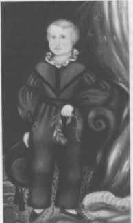 ![]() Figure 3.--Notice the wide-brimmed hat with prominent tassles that this American boy in an undated painting has in his right hand. |