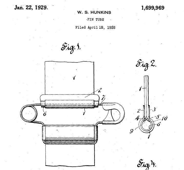 patent for the Hunkins pin tube, an indication that Hunkins kept