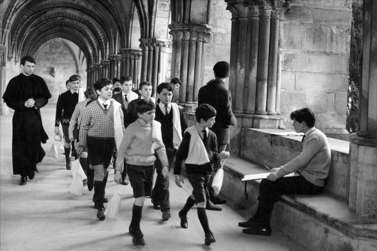 'Les amitiés particulières' is a classic French film (1964). It was released in Americas with English subtitles as 'This Special Friendship' (1967). It is a very romanasque novel. The title could be translated as "This Particular Friendship". Roger Peyrefitte's original book was translated into English as Special Friendships. That English translation is a bit misleading. The novel is about a charged platonic relationship between boys at a strict Jesuit boarding school in France. The books pre-World War I setting isupdated to contmprary times. It stars Francis Lacombrade and Didier Haudepin as boys whose chaste but intimate friendship is discouraged as sinful by the priests. I saw the film several years ago and unfortunately do not remenber the details now. The boys, as is the case at most French schools do not wear uniforms. They do commonly wear suits and many boys wear short pants suits with knee socks. The boy here is pictured in a sweater with short pants and knee socks. Except for the dark colored knee socks, the outfit looks British.