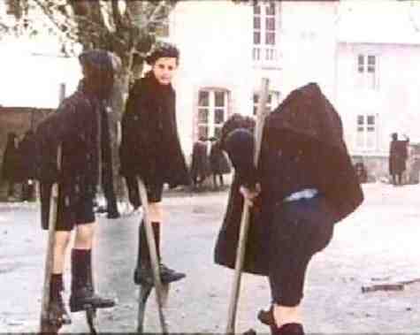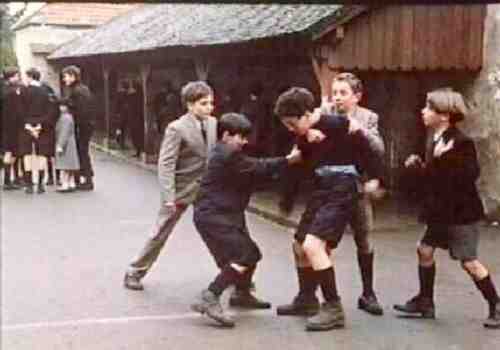 This French film is one of the classic films dealing with World War II boyhoods. It begins much like an ordinary school film with the normal friendships and conflicts among the boys. The film centers on the conflict and then growing frienship between the star pupil and a new boy who provides a little competition. Increasingly the War infringes upn the school. Along with being a fine film, many of the classoc French chool styles are seen, including berets, capes, short pants, and kneesocks. As younger children are not at the school, smocks are not pictured.