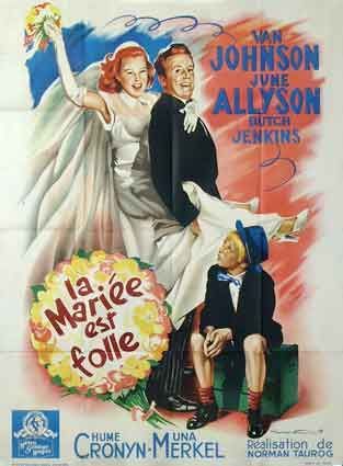 'The Bride goes wild' is a slap stick romance about the author of popular children's books. It is a typically sappy commedy, but actually rather humerous and the chenistry of the main chractrs works well. John McGrath publishes children's books beloved Uncle Bump is one of their most popuilar series. Greg Rawlings (Van Johnson) is the author and he not only hates kids, but is an irresponsible playboy who ikes to drink more than he likes to write. Not the best qualification for a children's author. There are two love interests for Johnson--Tillie and Martha. And as a result he keeps delaying getting down to work on his next book. Prim and proper school tacher, Martha Terryton (June Allyson), won a contest to illustrate the book. Rather than start work, Gerg get her drunk. McGrath next has to convince her to stay so he gets a Danny (Butch Jenkins), a little juvenile delinquent from an orphanage, to pose as his son and show her the pressure he has to deal with. Butch was very good in his roles and according to his reputation, he was well cast here. Butch's arrival leads to some good chuckels. One of the funniest moment is when Uncle Bumps and his publisher (Hume Cronyn) arrive at the orphanage to get Danny and unintentionally become involved with the boys in their game of indians. Meanwhile, Danny later has to see the the orphanage dentist for a cavity. Here there is a battle of wits. The dentist first has to get Danny into the dental chair. Then he has to get his mouth open. Meanwhile Greg is still recovering from losing Tillie. And he begins to look at Martha more kindly.
