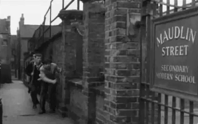 The movie is set in the fictional Maudlin Street Secondary Modern School. American readers need to know that a Secondary Modern was a secondary schools with generally low academic standards. The best students and teachers were at Grammar Schools (academically seclective secondary schools). A secondary modern was probably chosen because it was easier to make fun of the staff and many were coeducational. The grammar schools were mostly single-gender schools. The exterior shots show a real rather dreary looking brick school in a dreary looking neighborhood. Not a tree or a blade of grass in sight. Presumably the school was chosen as a backdrop as to why the Headmaster wanted to move to a different school. The name was concocted to furher this impression, 'maudlin' in English is often associated with drunkedness, but here probably means something like excessively sentimental. The staff and teenagers in the school were actors, but the exteriors were shot at a real school. And the producers seem to gone out of their way to find one that looked like it