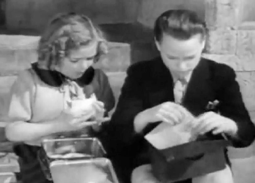 Quite a number of children are depicted in "Confessions oif a Nazi Spy". The costuming seems reasonably accurate. One of the conspirators had a todler son. He is dressed in what looks like a sweater and long pants. This was common duringvbthe winter. The one obvious mistake is the outlandish caps the shoeshine boys wear. Also probanly some of the boys would have worn knickers at the time. Knickers were declining in popularity, but there was usually some boys wearing knickers in any group of boys during the 1930s. One short clip shows a boy wearing a short pants suit finding NAZI propaganda in his lunch box. By the 1930s, boys in primary did not go to school dressed in suits, let alone a short pants suit. A few private schools had short pants uniforms, but this is not for the most part how American boys dressed for public primary schools. Suits were still work in secondary schools, but this varied from school to school. A reader tells us that the boys all wore suits at his junior high school in 1940, of course long pants suits. Interested readers can look at the HBC 1930s school pages. The boy even has a hankerchief in his jacket pocket. I have the idea that a boy showing up at school dressed like that was likekly to get beat up. The girl he is with is more reasonably dressed. She wears Shirtley Temple ringlrt curls. That was popylar at thge time. She wears a blouse or dress with a Peter Pan collar. There are also children at the NAZI rally who are not in uniform. They wear clothing thast seems reaonably period correct.