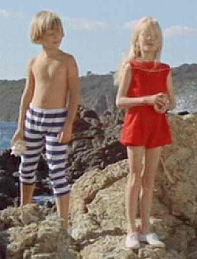 Figure 1.--The costuming for the film is basically correct for the adults and reasonable for the children. One reader reports quite rightly that the children's bathing suits are not quite right for the early 1900s. Jeremy's costume would have included a top and his pants are too long. Jemima's outfit is scandalously short for the time. |