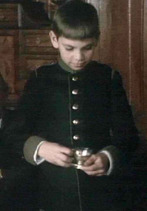 There are two uniforms worn by cadets: a dress outfit with silver buttons and a simpler everyday outfit. HBC does not know a great deal about cadet uniforms. Presumably they were based on the uniforms of the Austrian Army. They look more like World War I era uniforms than late 19th-century uniforms, but hopefully the film makers reserached the subject.