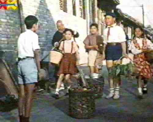 This interesting little French film has two settings, it begins in France and then shifts to China. The second part of the film is set in China where the French children are magically transported to and have many adventures. Thus the film also has information on the clothes wore by French children. Some of the films also so Chinese boys in their Young Pioneer uniforms.
