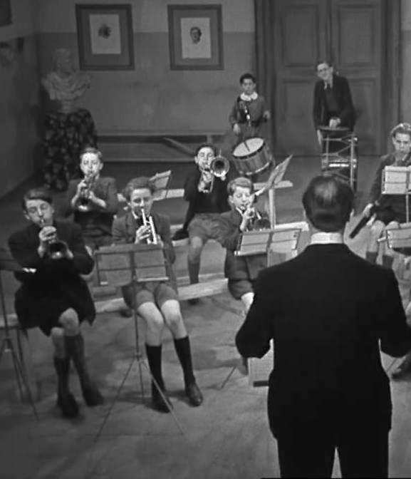 at the college who form a secret society--the Chick-Capon. They want to go to America--attracted by cowboys, dollars, and skyskrapers. Then one of the boys see a man who seems to becoming out of a wall. He tells the others, but then disappears. The boys are in their English lesson. The book is The Invisible Man. The boy wearing the open neck shirt is sent to the principle for talking. On his way back he disappears. This is because he saw something mysterious in the science room. The school Orchestra. The second boy to disappear does so after being sent to the director for misbehaving in the music lesson. There are no subtitles so we not sure what was going on but there is a gang of counterfitters and a secret passage. Soon the second boy disappears. There is suspense as to whether they have taken off fvor America or if something sinister is unfolding. At this point the art teacher is brutally murdered. The surviving third boy starts to investigate.