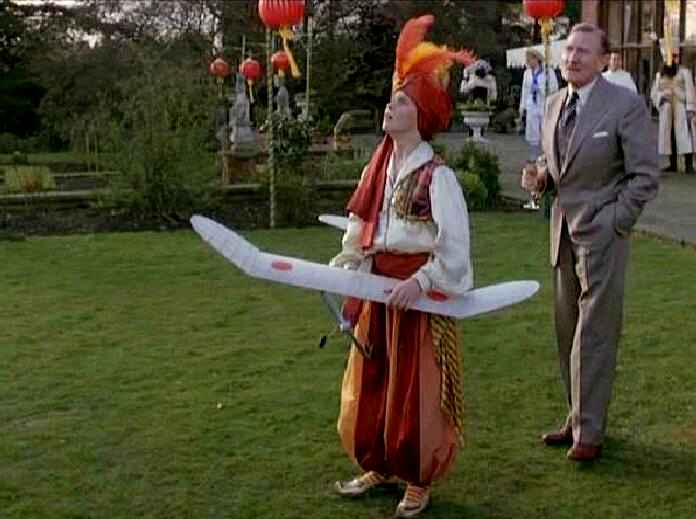 The film begins with Jim as a smug little British schoolboy. He sings in the school choir. We see Jim in the Choir The first pic is Jim performing in the choir at the start of the movie. He is pictured as an intelligent, dreamy child lehding a privileged life. That ends suddenly when the Japanese strike. An only child, he is separated from his parents when the Japanese seize the city and round up the Europeans. He almost starves as the Japanese refuse to take him prisoner until two disreputable Americans he becomes attached to are captured. In the internment camp Jim eventually gives up on the British who have standards, but are hapless and weak. He is drawn to the Americans, a ratty bunch who know how to survive. Jim is intragued with planes and there is a Japanese air base near the concentration camp. Apparently the Japanese soldiers at the air base tolerated him even though he was not allowed to leave the camp here he was confined. There he makes feiends with a Japanese youth. Jim's Japanese friend is killed near the end of the film.