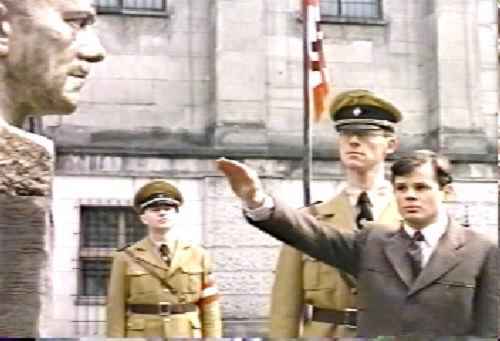 The subject of NAZI Germany's Hitler Youth has fascinated fim makers since the very first years of the Third Reich. Several films have been made specifically on the Hitler Youth, but it is a rare film about NAZI Germany that does not include a required scene with Hitler Youth boys. The most notable such scene is from the Broadway musical Cabaret. Information on several other Hitler Youth films, several made in Germany, are avialable on HBC. The first such film was made in Germany, Hitler Jugend Quex. While it looks rather hokey to us today, it had a powerful impact in mid-190s Germany. The prevelence of the Hitler Youth in movies is extrodinary. The much larger Boy Scout movement is rarely depicted in films. The Hitler Youth, however, is rarely left out in a film with a German setting from the late 1920s to 1945.