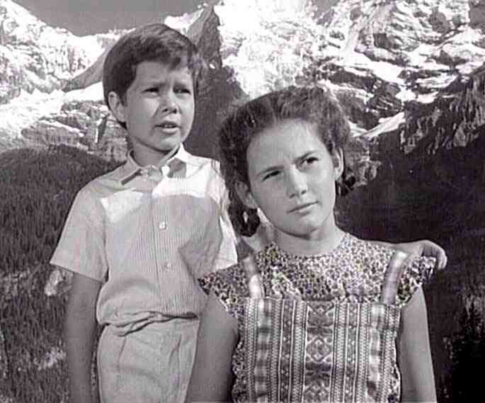 "Frühlingslied" is one of the many "Heimat films" made in West Germany during the 1950s. As soon as you see children and the Alps, you know you are looking at a Heimat film as this film as both in abundance and evens adds a pooch. The title translates "Song of Spring". The plot as a Heidi-like twist although the rich city child here is a boy--Wolfgang. A HBC reader tells us that it was a real tearjeaker. The movie was directed by Hans Albin. The screen play was written by Peter Francke. The main character was played by Oliver Grimm. Oliver just began making movies in 1952 and already he has a starring role.
