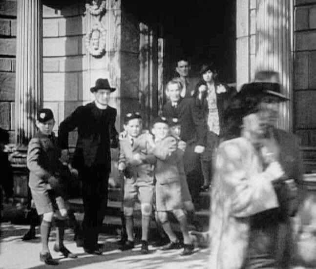 Rather a hokey spy thriller made by Hitchcock. Near the beginning the hero's family sees him off to Europe. A little fellow, presumably a younger brother appears in short shorts and mischiviously nabs his hat. Later during a scene in a tower the correspondent is about to be pushed to his death a school group shows up. The boys att wears dark caps and presumablyh grey short pants suits. The shorts are very long as was the style then. At the end Hollywood makes an appeal to America. The American foreign correspondent is making a broadcast with the Luftwaffe makes another raid on London. When the lights go out in the studio he describes the lights going out all over the world, only in America were the lights on. The correspondent urges American to build more guns, tanks, planes, and battleships. Sounds hokey today, but it wasn't at the time. In actuality, American correspondents in Europe, especially Edward R. Murrow and his vbrodcasts during the Blitz, played a major in changing the isolationists views of most Americans.