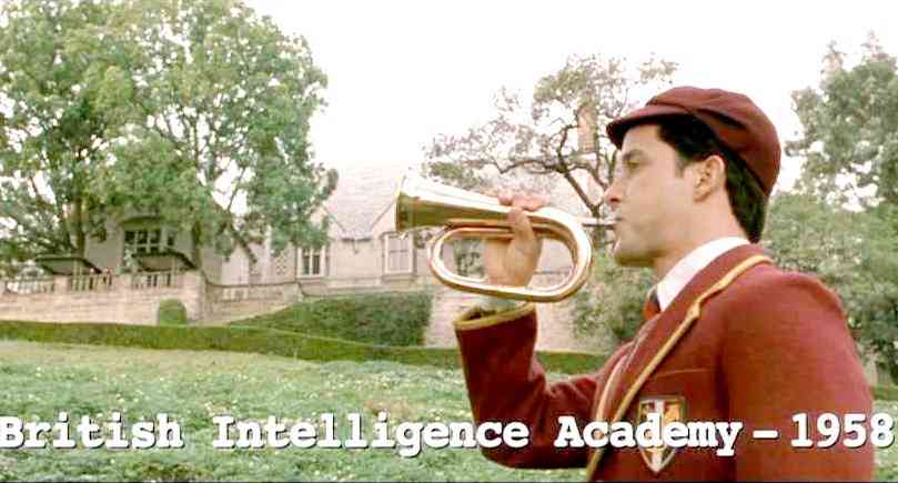 Figure 1.-- 'Goldmember' is another movie in the Austin Powers collection. It depicts 'Mike Myers' amongst some others, attending a British Intelligence Spy School in 1958. The scenes where the actors are wearing school uniforms are flashbacks as Mike Myers reflects on his past. |