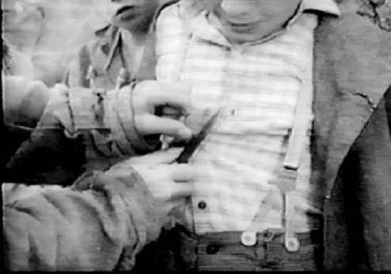 Figure 2.--This boy has just had all the buttons cut off his clothes. Click on the image for another scene. |