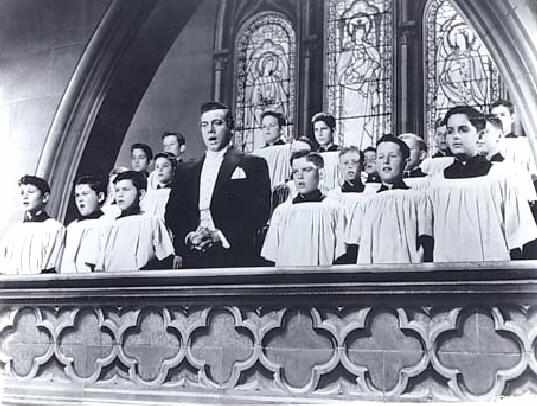 Mario Lanza in "The Great Caruso" appears with a boys' choir. I'm not sure if the boys were from a choir or just recruited to play the choral parts. Mario Lanza's tenor voice made this film one of the top box-office draws of 1951. What's more, it helped to popularize opera among the general public and to inspire two boys to pursue opera careers -- Placido Domingo and Jose Carreras. In the film, Lanza portrays the legendary tenor Enrico Caruso (1873-1921), who first rises to prominence in his native Italy, then earns critical acclaim in America. In imitating the power and majesty of Caruso's voice, Mario excels. Among the arias he sings are "Celeste Aida" (from Aida, by Giuseppe Verdi), "Vesti la giubba" (from I Pagliacci, by Ruggero Leoncavallo), and "Che Gelida Manina" (from La Boheme, by Giacomo Puccini). Lanza also sings popular selections and performs the Johann Sebastian Bach-Charles Francis Gounod version of Ave Maria with a boy choir. In a PBS television special, acclaimed opera star Domingo, one of the "three tenors," said the 1951 film truly inspired him when he was a boy growing up in Mexico, and that Lanza "was a superstar before that word was even invented." Carreras, another of the three tenors, dedicated one of his albums to Lanza. Ironically -- because of hard living, debilitating stage fright, and an unruly temperament -- Lanza himself never joined an opera company, and opera critics generally snubbed him as an undisciplined lout even though he became the first opera singer to sell more than 50 million albums. "The Great Caruso" won an Academy Award for best sound recording and an Academy Award nomination for best music and best scoring.