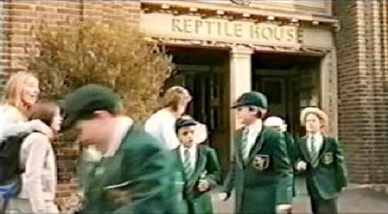 The costuming in the "Sorcerer's Stone" was a kind of mix of traditional and modern styles. At the Hogwarts school the students wear traditionally styled uniforms. We note one scene at the beginning of the film. Some school children lare shown eaving the zoo. They are wearing a typical school uniform including caps, now rarely seen, and long trousers, now common. The girls wear straw hats. This comes from the beginning of the movie when Dudley, who’s celebrating his birthday, visits the zoo with his parents and Harry. Dudley's private school uniform includes a boater.
