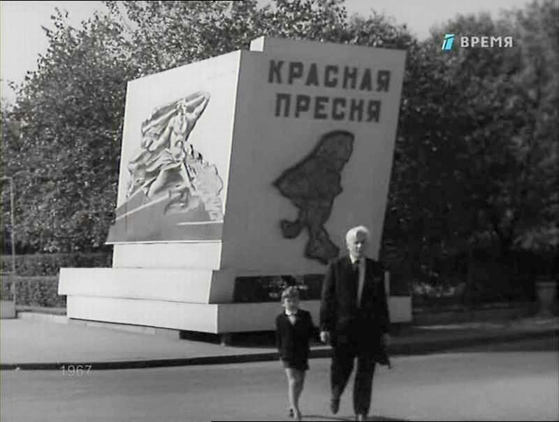 The plot of 'I'm in Love with You, Life!' is made up around a granddad and a grandson walking streets of Moscow. Grandfather tells the boys all his stories and experiences about the various city land marks. A reader has provided plot details. "You can watch this film online. I watched it. It is essentially a Soviet propaganda film exalting Russian life by showing various aspects of Moscow through the eyes of a small boy who is taken around the city by his grandfather. The tour of Moscow is interrupted frequently by performances by male singers whose faces are shown in close-up and who sing patriotic Russian songs. The grandfather buys his grandson a folder of photos of the city and the boy examines them on a park bench while the grandfather reads a newspaper. They meet a decorated Russian army officer who takes a liking to the boy and salutes him. The officer tells the boy about adventures in the military. Later they meet a group of Mexicans and the boy is given a huge sombrero to wear which delights him. Continuing their tour of the city, the boy comes upon a little girl and her mother. The girl is crying about some minor "tragedy" in her young life, and the boy cheers her up by giving her the sombrero to wear. The grandfather shows the boy monuments to the glory of Russian history, and they visit a tomb of the unknown solider of the Great Patriotic War so that the boy can lay a bouquet of flowers in tribute to fallen Rd Army soldiers (figure 1). We are given a sense of Russian military prowess by sights of missile installations and other evidences of Russian military superiority. Lots of footage of street crowds, people coming out of subways, etc.--the bustle of Moscow city life. He plays hopskotch on a grid that has been chalked by other children in the street.
