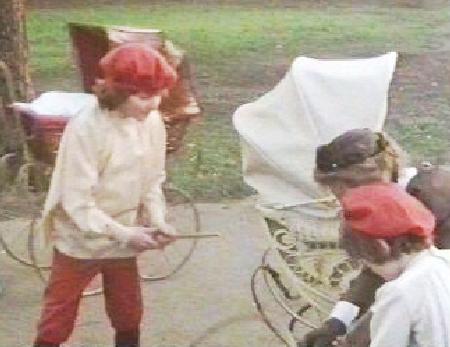 The BBC in 1978 produced a made for TV film about J.M. Barie and the five boys of Arthur and Sylvia Llewelyn Davies. The film is based on the book Andrew Birkin and the Lost Boys published in 1979 by Andrew Birkin. The relationship is brilliantly explored in the book and summarized in the BBC film. The costuming in the film appears to have been reasobably accurate. The boys wear back buttoning smocks and berets which is how the Llewelyn Davies were ctully dressed. I am not sure, however, how accurate the colors were. In the film the boys wear red berets and cream smocks. As the available family photographs are black and white and thus we are unsure just what color berets and smocks that the boys actually wore. In additioin, the smocks that the oys wore in the film seem rather shorter than the ones the Llewelyn Davies boys actually wore, or normally worn by other English or French boys. I don't think I have seen boys in the late 19th and early 20th century wearing such short smocks. The actual smocks I have seen were much longer.