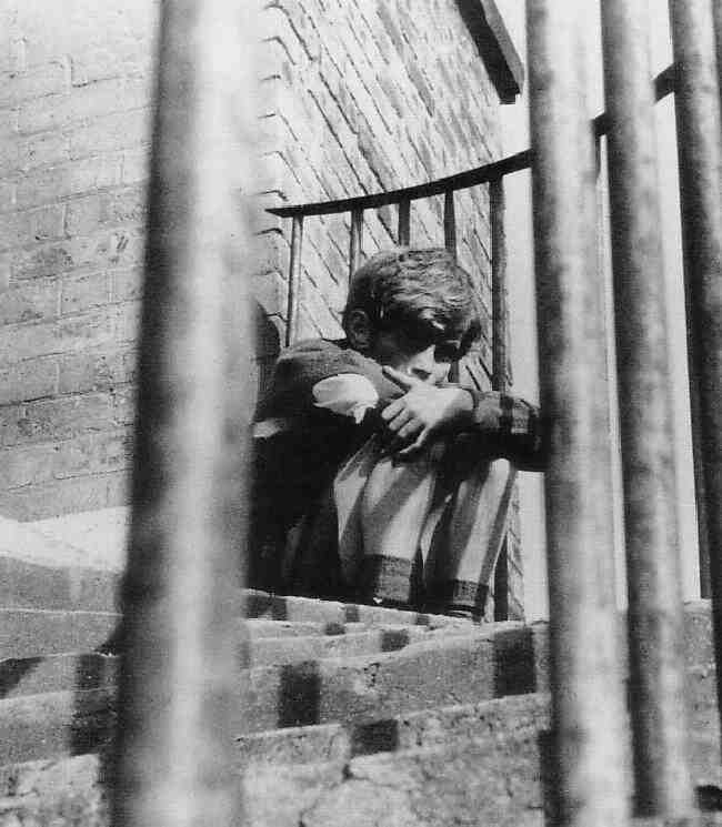 invoke prison bars,it shows how the boy is trapped in his situation as many were in Scotland at the time.He only escapes when he is called up to do his National Service some 4 years later.