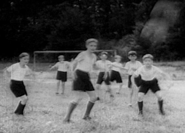Herr Blueml decides to have Tony, somehow, join a Vienna choir. He is so inspired by Toni's voice that he takes Toni to a prestigious school and home for boy singers. He attempts to get him enrolled by sneaking into the Vienna Choir Boys' institute. He is not sure how to go about it. There is no evidence of the approaching Anschluss and the story focuses on the selfless assistance given Toni by Herr Blüeml, the street singer, and Toni's finding a new home with the Choir. The boys are playing football when Herr Blüeml and Toni arrive. Toni quite happily joins the boys in a game of football.