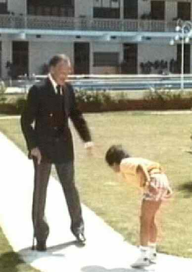 injury. After the boy is kidnapped the major has to fight properly to return his charge to his father so prooving himself afterall. He acts out his dreams of heroism. This comedy stars David Niven. The boy wears a variety of outfits, mostly casual Japanese style "T" shirts and short and long pants. At the time it was very common for Japanese boys to commonly wear short pants, even in the winter. Ando in this film often appears in lng pants, perhaps because he is not in Japan. He also wears some traditional Japanese garments. Despite the English tutor, he does not wear English clothing. I have not seen this film, but a HBC reader has provided some scenes from the film. The film was directed by Ken Annakin.